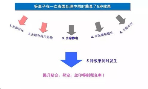 依靠等離子體中活性粒子的“5種作用”,增強(qiáng)粘接、貼合、焊接、涂覆、邦定、除膠效果。被清除的污染物可能為有機(jī)物、環(huán)氧樹脂、光刻膠、氧化物、微顆粒污染物等。針對不同的污染物,應(yīng)采用不同的清洗工藝,所選用的氣體也不同。